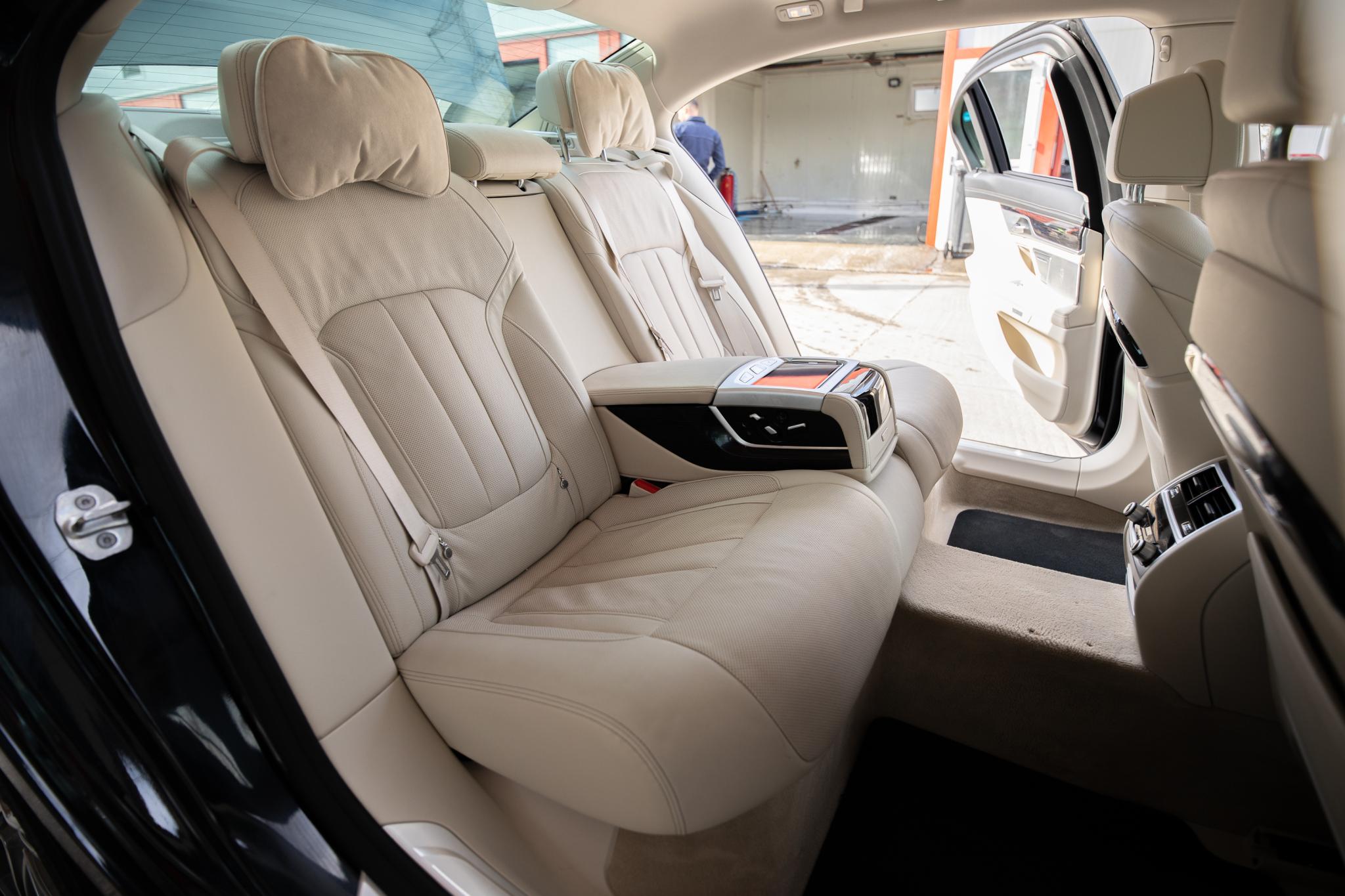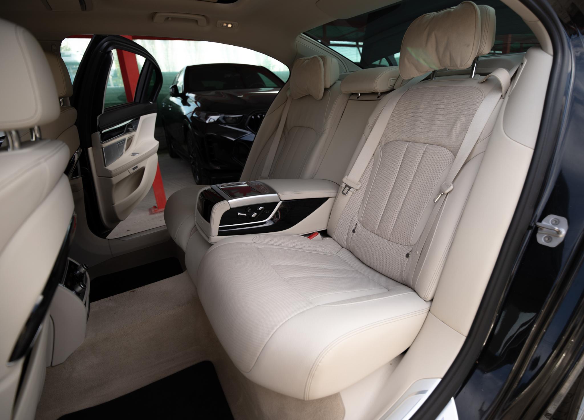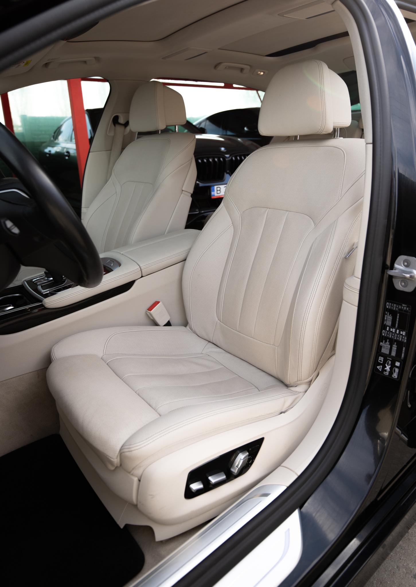 BMW Seria 7 730Ld xDrive Sky Lounge Pret: 34.490 EUR TVA INCLUS SI NEDEDUCTIBIL Motor: B57O Combustibil: Diesel KM: 153.810 Putere: 265 CP Transmisie: Automata Tractiune: Integrala xDrive Culoare: Black-Sapphire Metallic (L0475) Interior: Leather "Dakota/elfenbein-weiss" (PLCEX) Dotari: Carbon Core (sasiu din carbon) Volan din piele Sport Integral active front steering Executive Drive Pro Comfort access Soft-Close-Automatic doors Camere 360 Sky Lounge Scaune reglabile electric cu memorie Scaune ventilalte si incalzite Banchete reglabile electic Banchete ventilate si incalzite Heat Comfort package Climatronic 4 zone Ambient Air Paket Lumini Ambientale Faruri Adaptive LED Lumini de ceata LED High-beam assistant Driving Assistant Plus Park Assist Remote-controlled parking Navigation system Professional Head-up display CD drive DAB tuner Intelligent Emergency Call Teleservices Connected Drive Services Real-Time Traffic Information Smartphone Integration Bowers & Wilkins Diamond surround sound system Incarcare wireless BMW Gesture Control BMW Touch Command Active pedestrian protection Haion electric Tableta in cotiera din spate Perdelute geamuri spate si luneta Adaptive Cruise Control Limitator Stergatoare automate Volan incalzit Scrumiere in spate