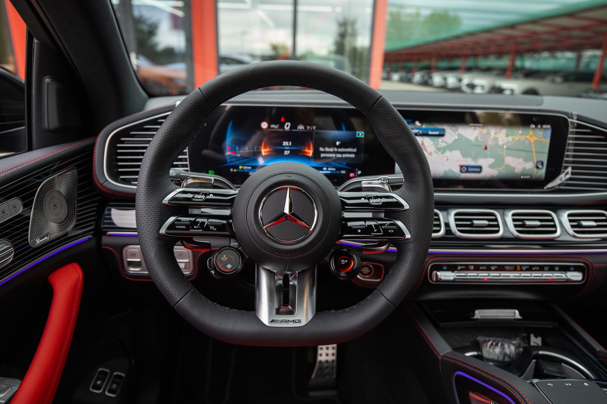Mercedes-Benz AMG GLE 53 Coupe Plug-in Hybrid 4MATIC Pret net: 118.000 EURO Pret brut: 142.780 EURO Motor: M256 Putere: 544 CP Transmisie: Automata 9 viteze Tractiune: 4x4 4MATIC Culoare: Opalite White - Metallic (885U) Interior: Nappa Leather / Semi-Aniline - Red (867A) Dotari: Mercedes-Benz Connect - Services Apple Car Play Android Auto ADAPTIVE DAMPING SYSTEM PLUS (ADS+) Dashcam (camera de bord) Mercedes-Benz Connect MBUX Entertainment Monitorizare Unghi Mort ACTIVE PARKING ASSIST ADAPTIVE CRUISE CONTROL PRO (DISTRONIC PRO) ACTIVE STOP-AND-GO ASSIST Scaune ajustabile electric cu memorie ACTIVE LANE KEEPING ASSIST (CAMERA) GPS aerial Pachet memorie (scaune, volan, oglinzi) Airbag Genunchi Suport de pahare incalzit/racit Sanner de amprenta Scaune ventilate si incalzite cu functie de masaj Head-up Display Suspensie pneumatica semi-activa ( AIRMATIC ) Camere 360 Sistem recunoastere semne de circulatie Plafon negru DAB Automatic high beam control plus (IHC+) - faza lunga automata Faruri Dynamic LED Porturi USB Control prin gesturi Sistem spalare parbriz incalzit Lumini ambientale Keyless Entry / Go Incarcare Wireless INTERIOR CHROME PACKAGE Cotiere Incalzite Volan AMG din piele Nappa AIR QUALITY PACKAGE PARKING PACKAGE HIGH