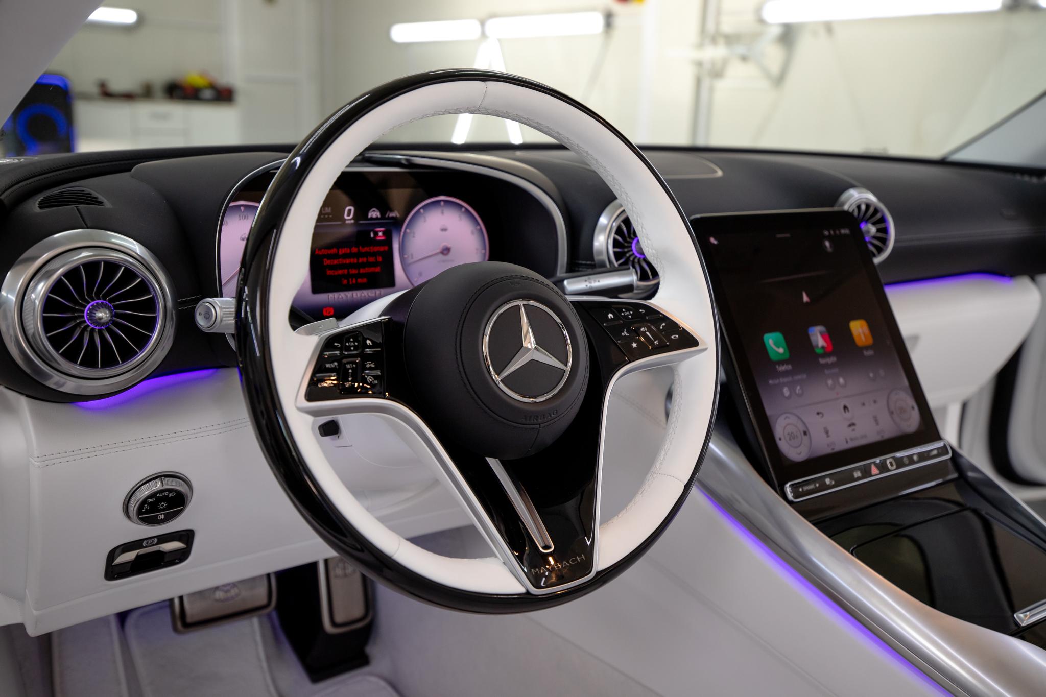 Mercedes-Benz MAYBACH SL-680 Monogram Series NOU 24 de KM V8 4.0 l 585 HP Interior Manufaktur Opalite White Magno Burmester Hight-End 3D surround sound system AMG SpeedShift MCT 9G Pret Net : 260.000euro Pret Brut: 314.600 euro IN STOC !!! Aducem orice auto pe comanda!!! POSIBILITATE LEASING PERSOANE JURIDICE SAU PFA !!! • Tapițerie MANUFAKTUR Exclusive din piele Nappa Alb Cristal • Capitonaj plafon microfibră MICROCUT Alb Cristal + varianta neagră • Volan încălzit, multifuncțional, îmbrăcat în lemn și piele • Pachet Energizing Plus & ENERGIZING Air Control • Scaune față climatizate, multicontur cu funcție memorie • Lumina ambientală & pachet depozitare • Sistem multimedia MBUX cu Navigație Premium • Apple CarPlay & Android Auto • Încărcare wireless pentru locurile din față • Head-Up Display • Sistem audio Burmester® High-End 3D Surround • DISTRONIC PLUS cu asistent trafic (DTR+Q) • Asistenți activi pentru schimbare/mentinere bandă, parcare și fază lungă • Funcție de repornire automată în blocaje • Cameră 360° & acces HANDS-FREE • MAGIC VISION CONTROL & proiectare simboluri/linii • Motorizare V8 cu transmisie AMG SPEEDSHIFT MCT 9 • Suspensie AMG ACTIVE RIDE CONTROL • Punte spate directoare & diferențial AMG blocabil electronic